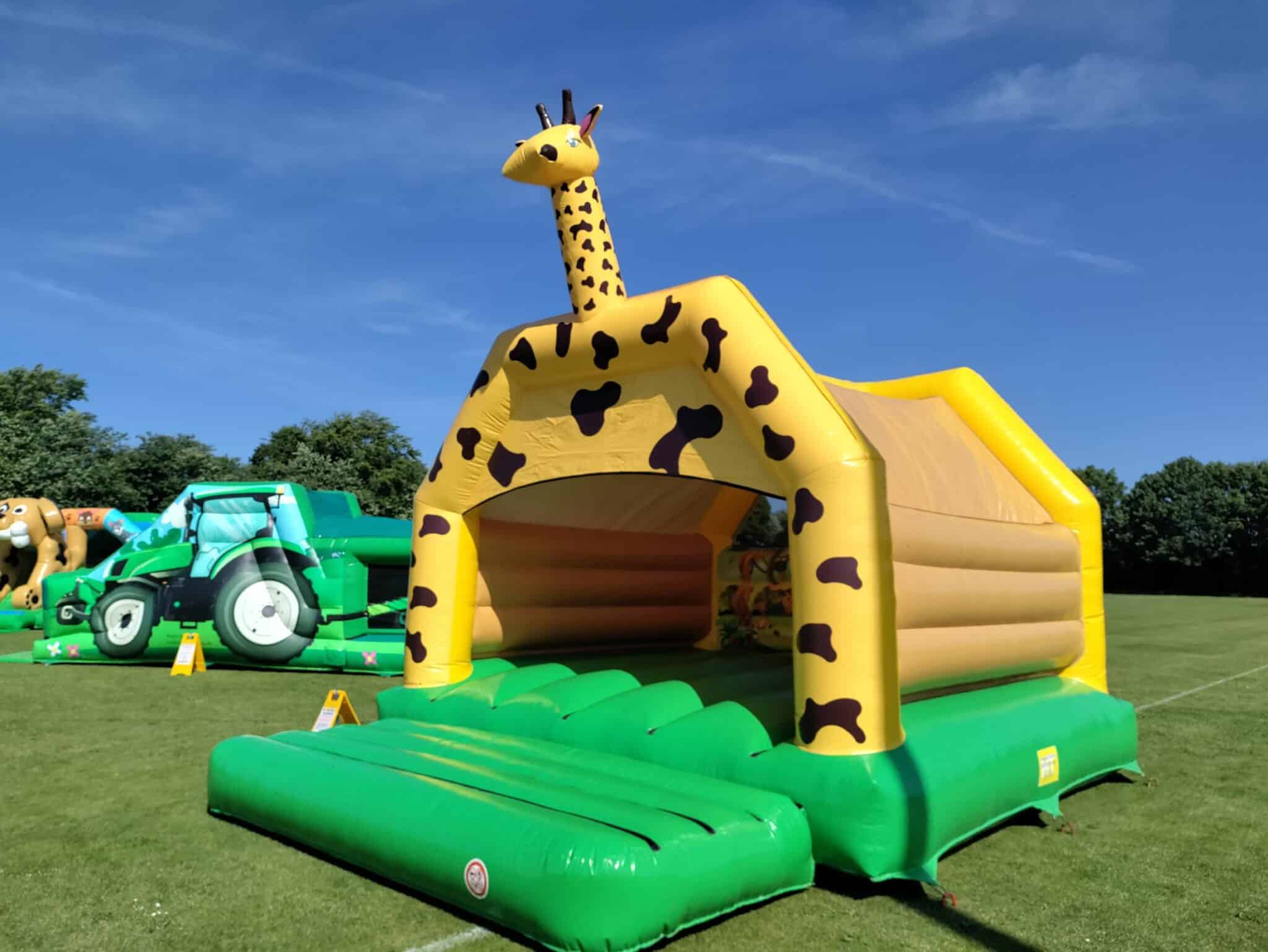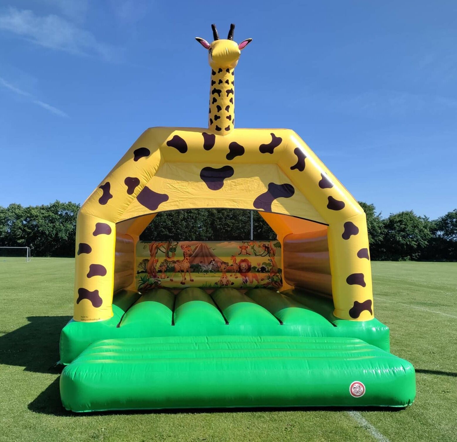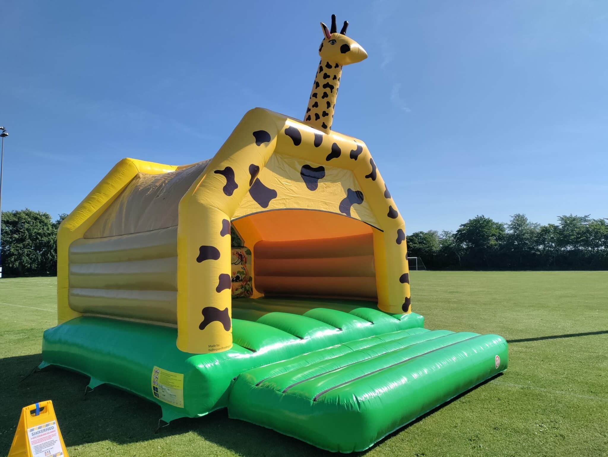 Giraf Hoppeborg 5×6 m med tag – sjovt design og beskyttelse mod sol og let regn.